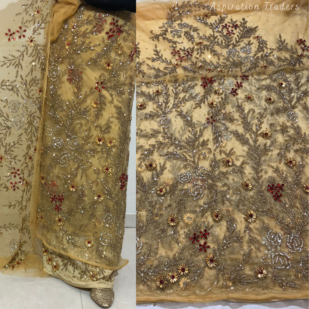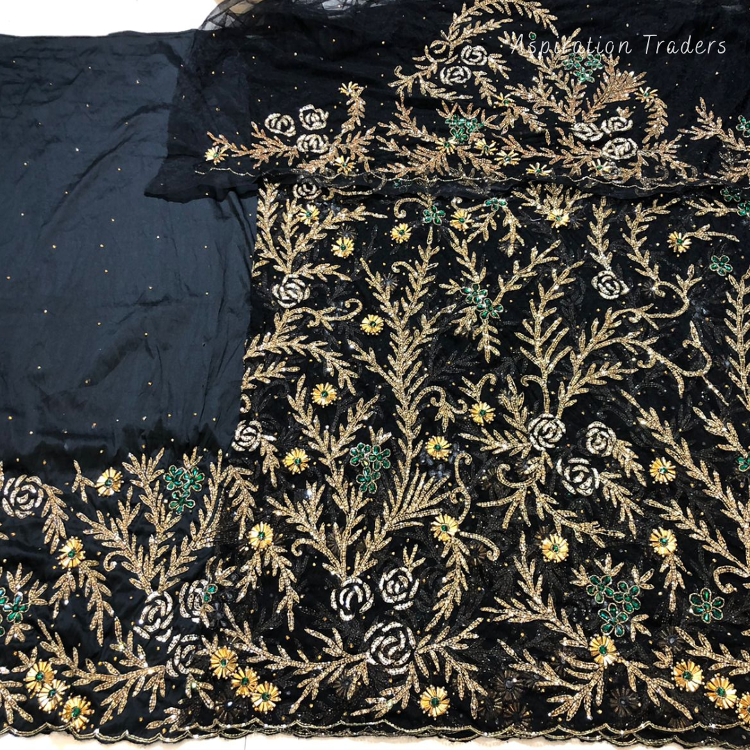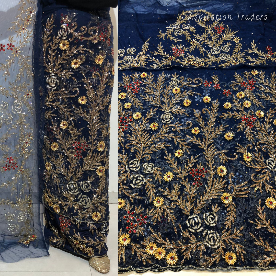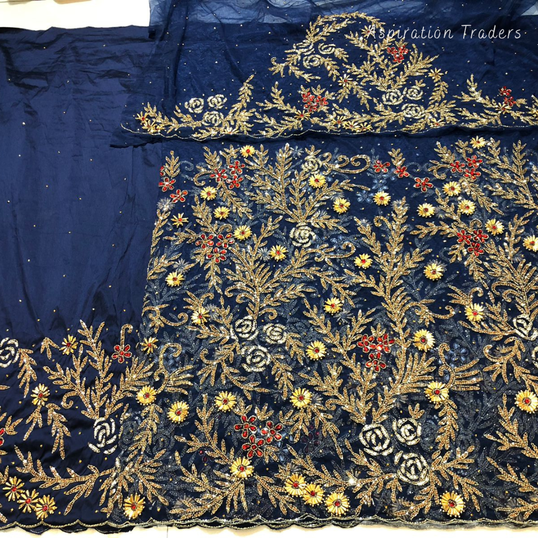 Bold Navy Blue Stone beaded Net Lace George Wrapper Set - NLDG330