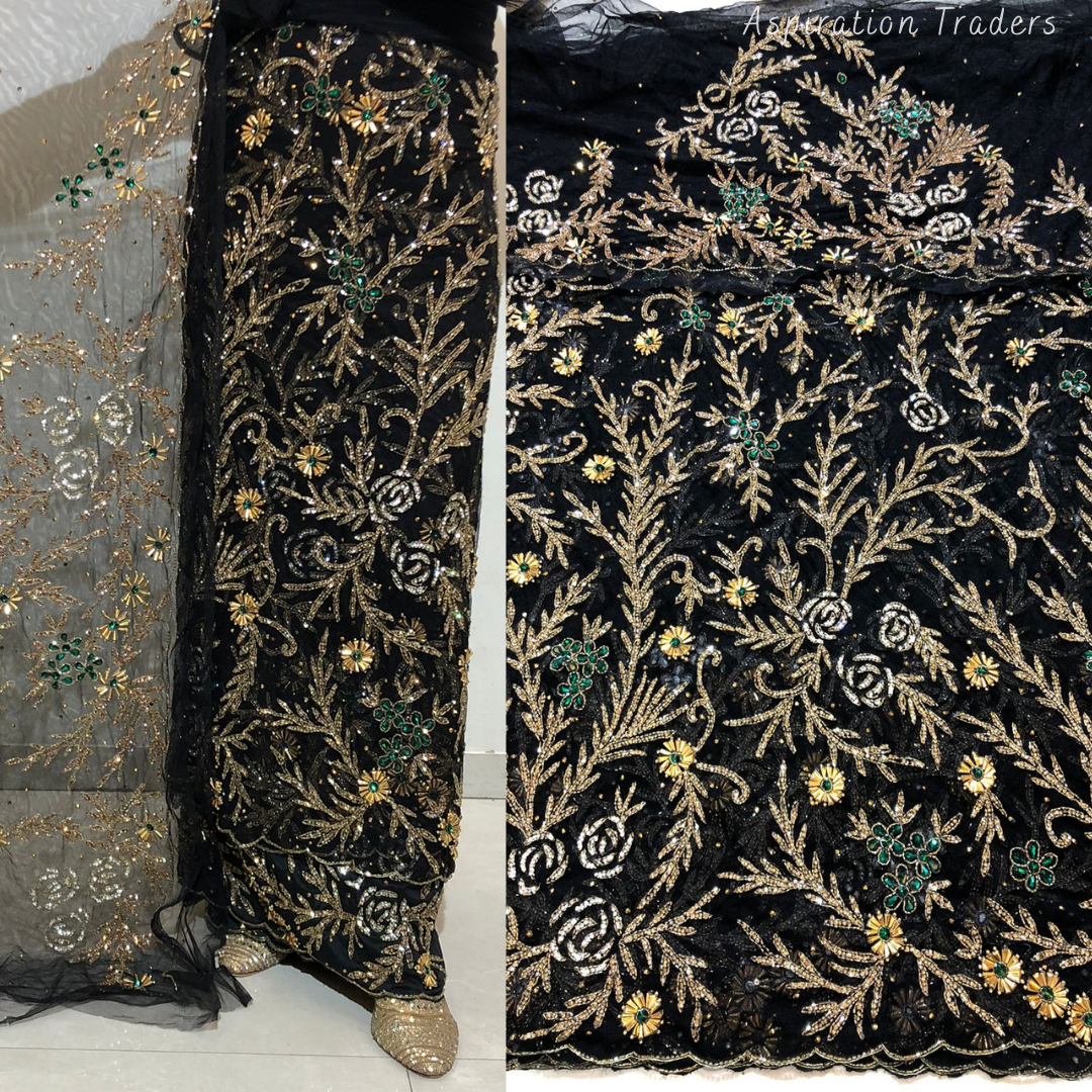 • Load image into Gallery viewer, Bold Navy Blue Stone beaded Net Lace George Wrapper Set    - NLDG330