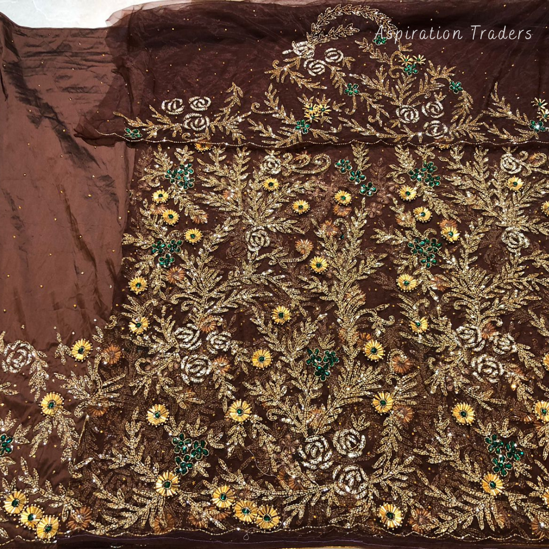 Bold Navy Blue Stone beaded Net Lace George Wrapper Set    - NLDG330