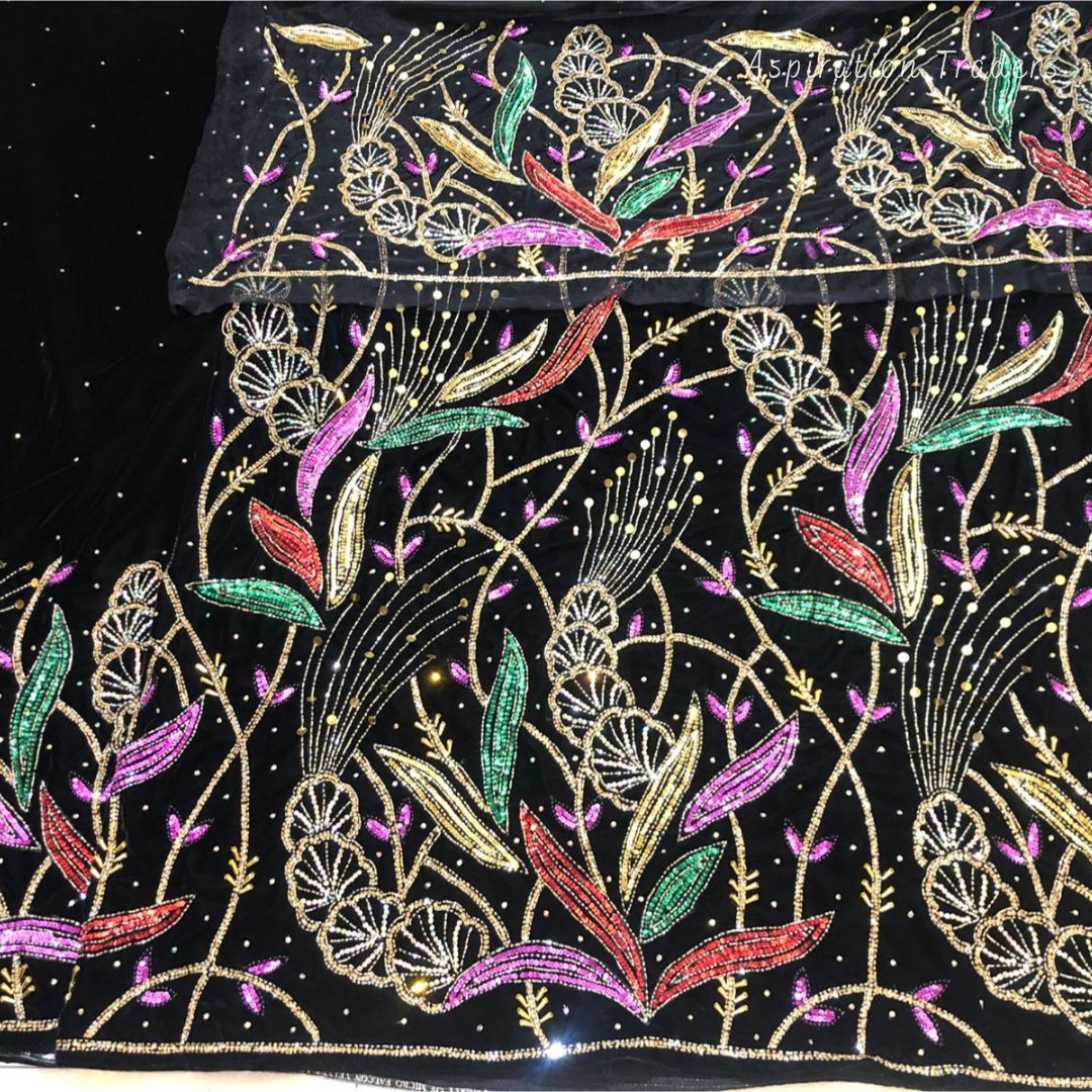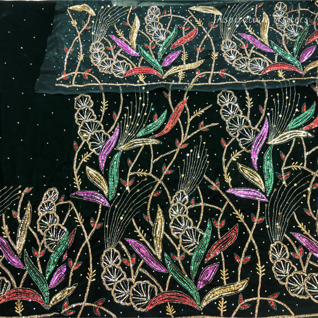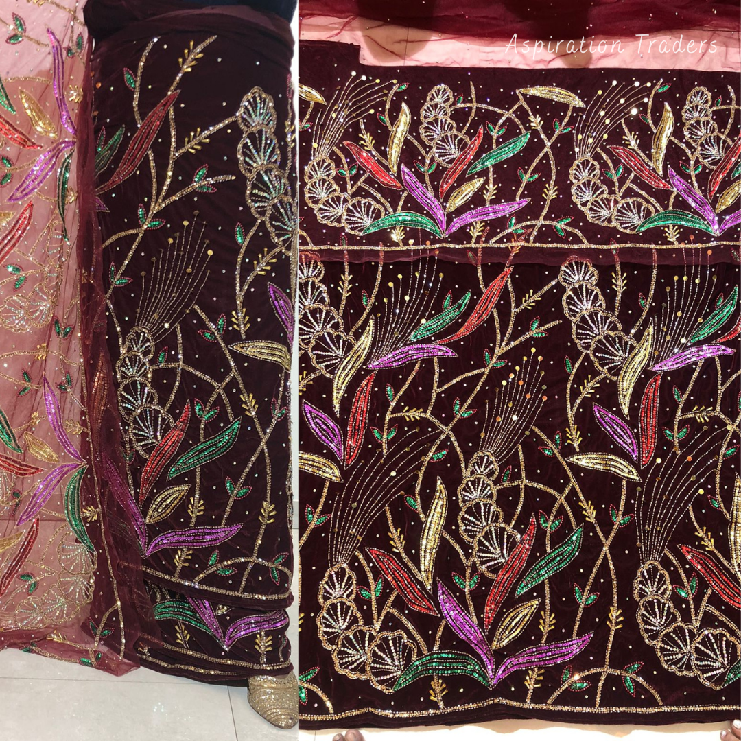 - African High-Quality velvet lace fabric with lots of Stones Work, Pearl Work, CutWork.