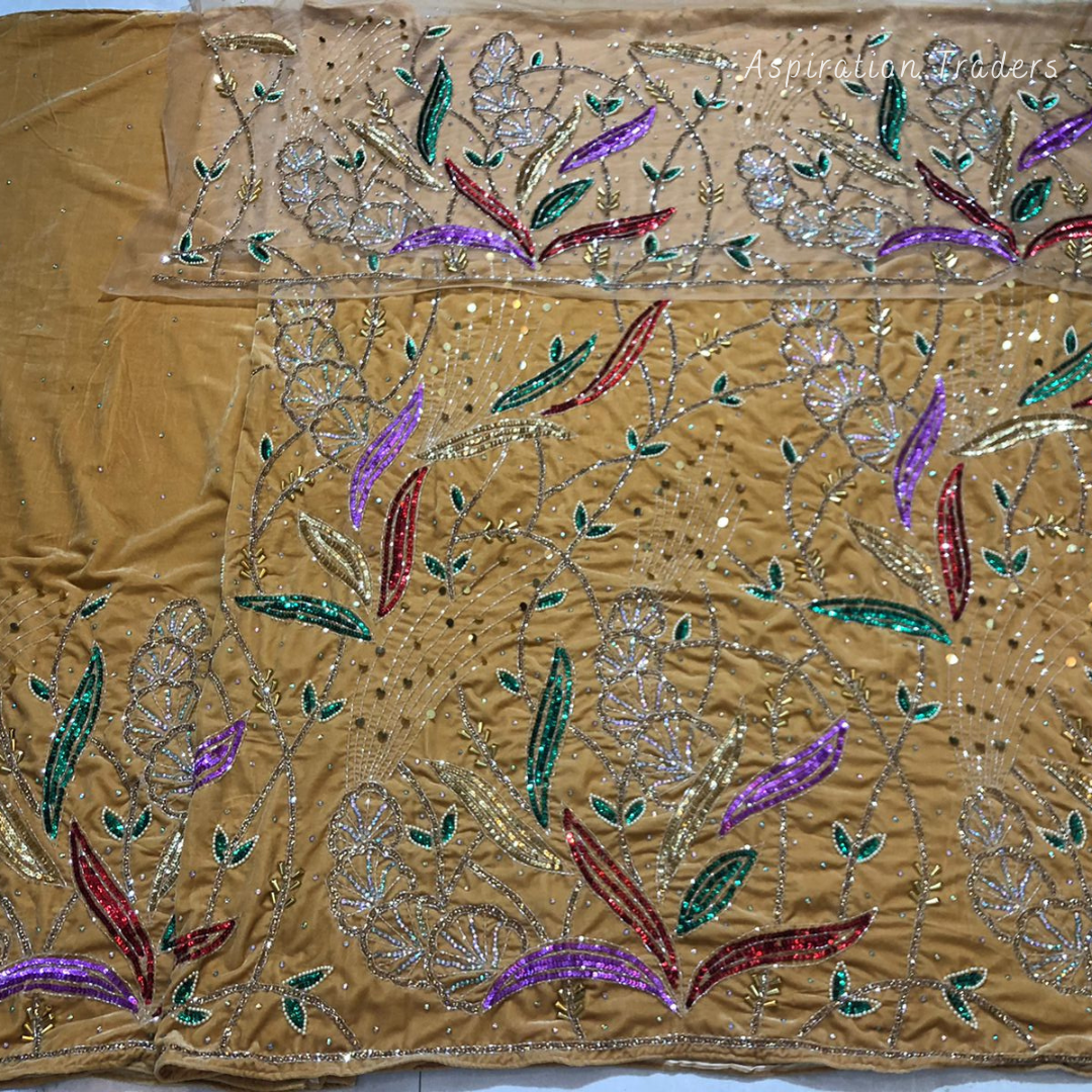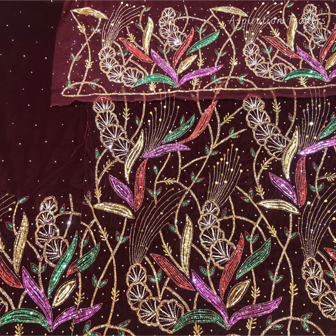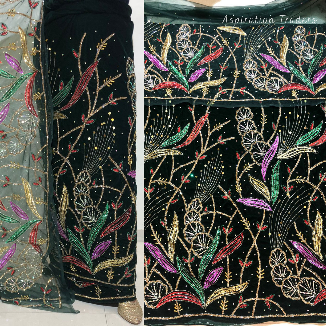 - African High-Quality velvet lace fabric with lots of Stones Work, Pearl Work, CutWork.