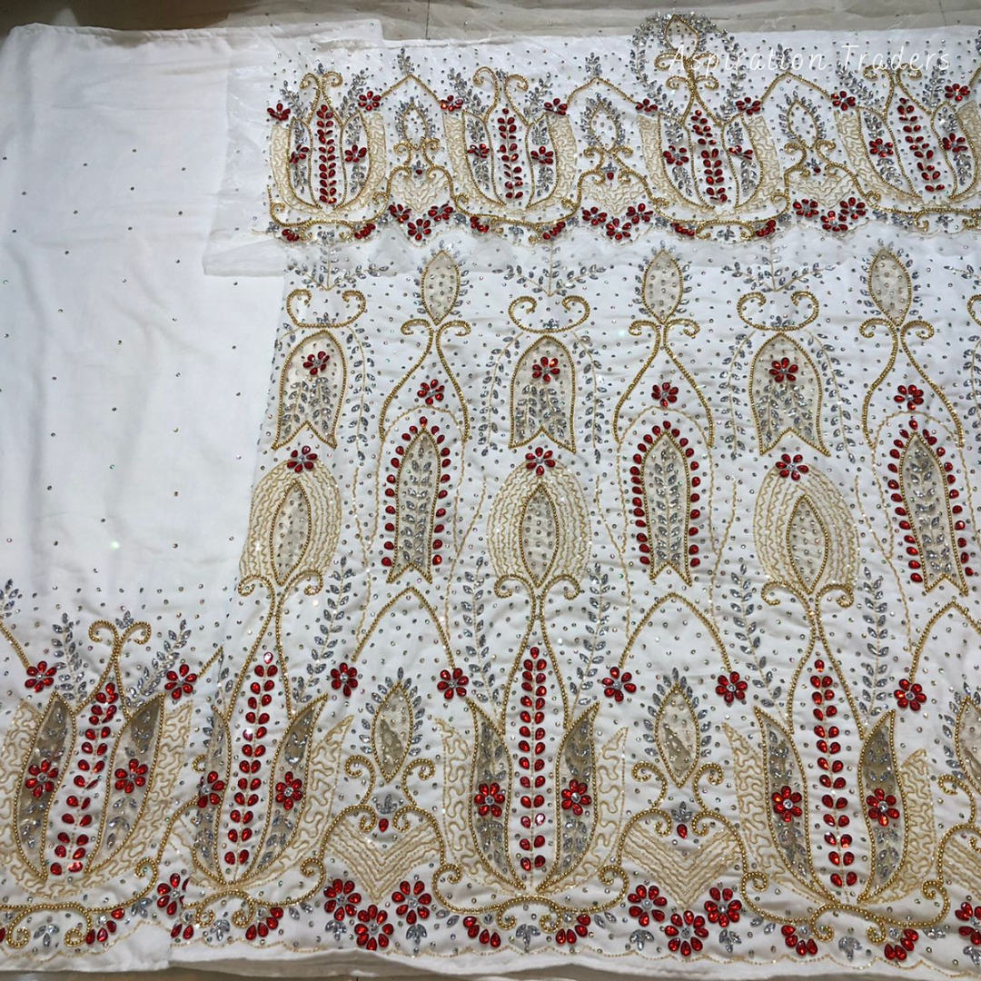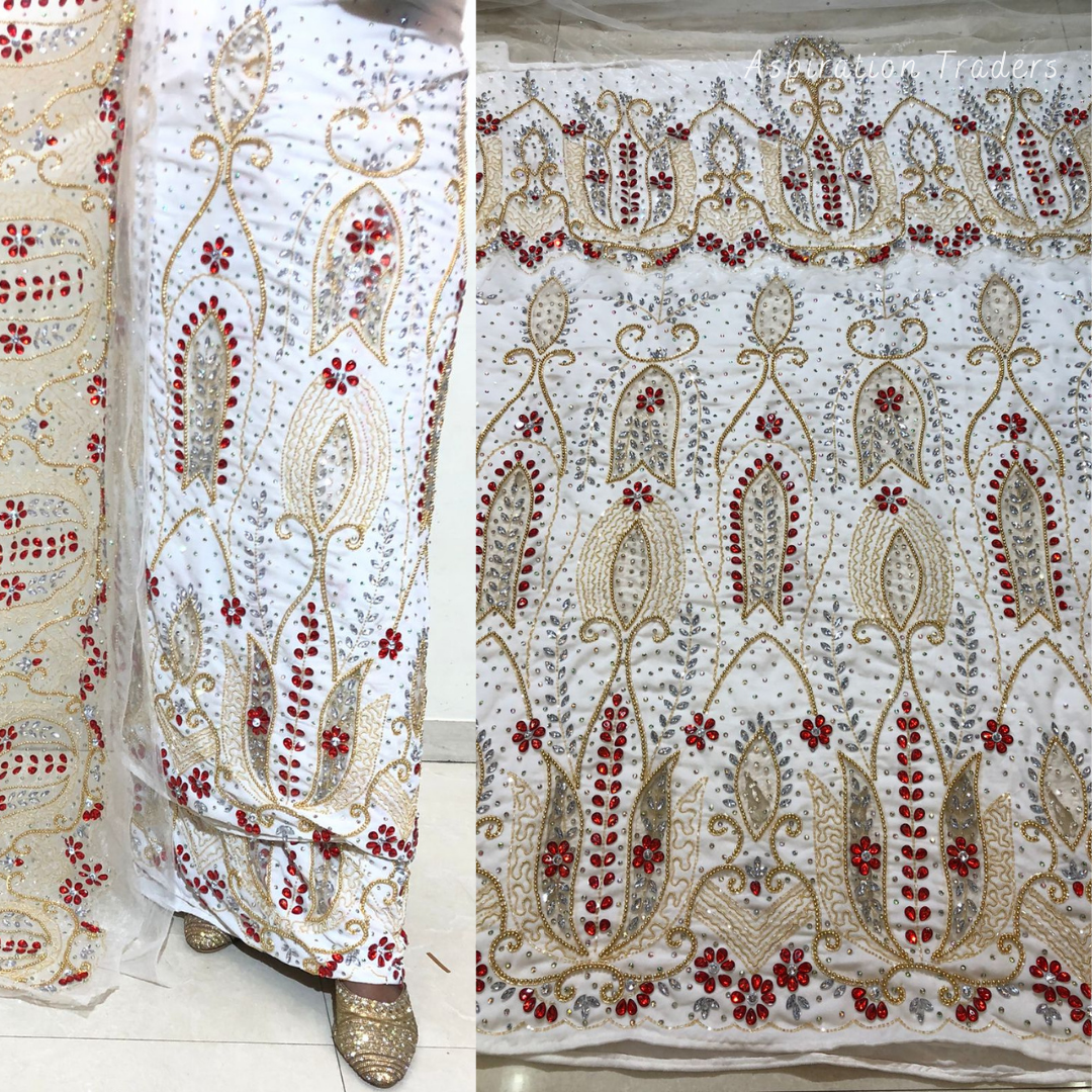 - African High-Quality velvet lace fabric with lots of Stones Work, Pearl Work, CutWork.