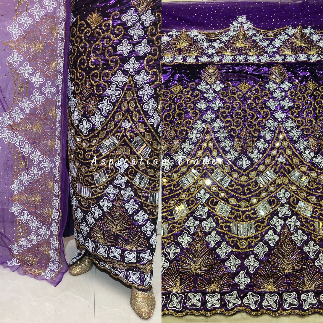 Gorgeous Purple Metallic George Fabric For African Wedding George wrapper set - HBMG041