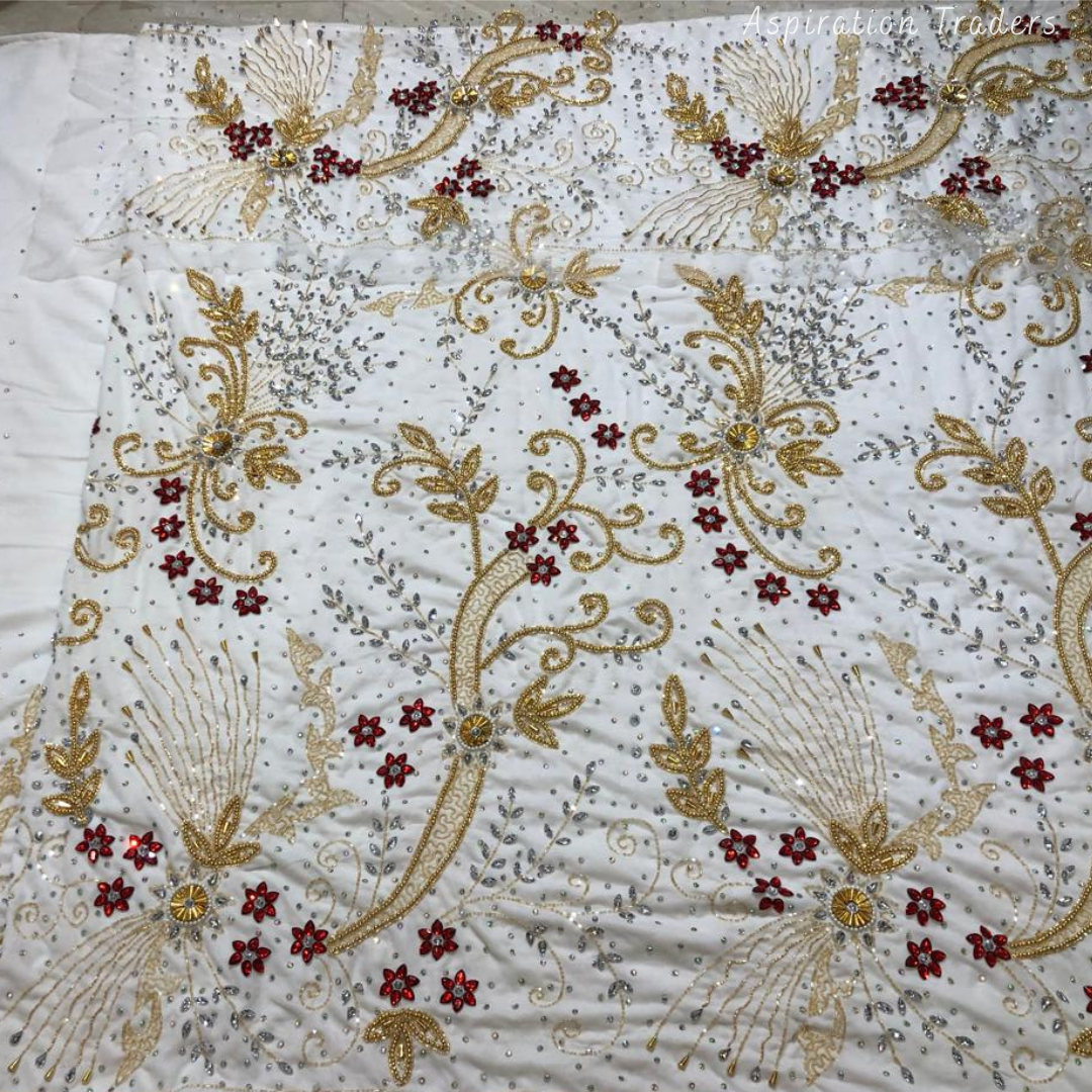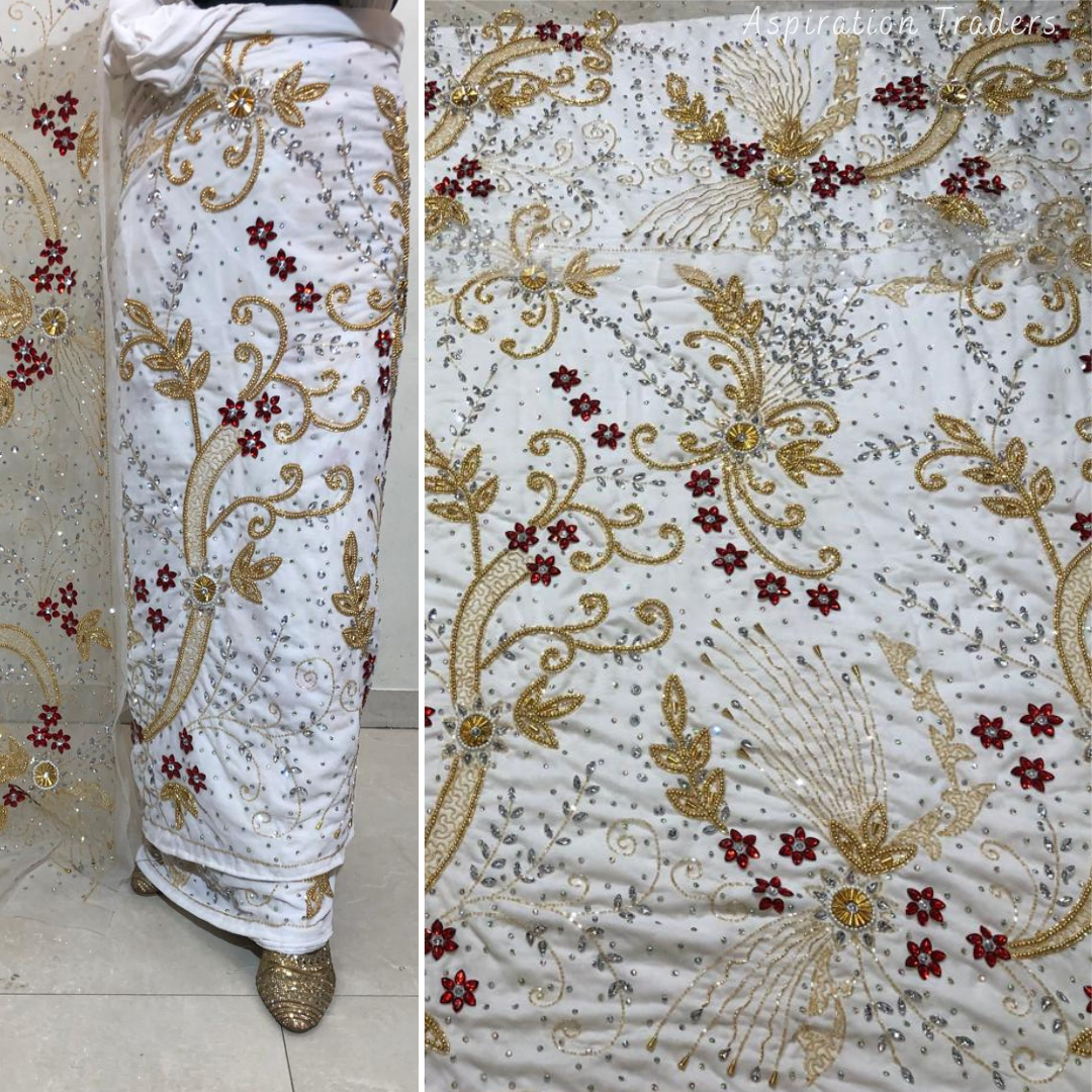 • African High-Quality velvet lace fabric with lots of Stones Work, Pearl Work, CutWork.