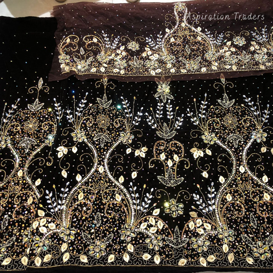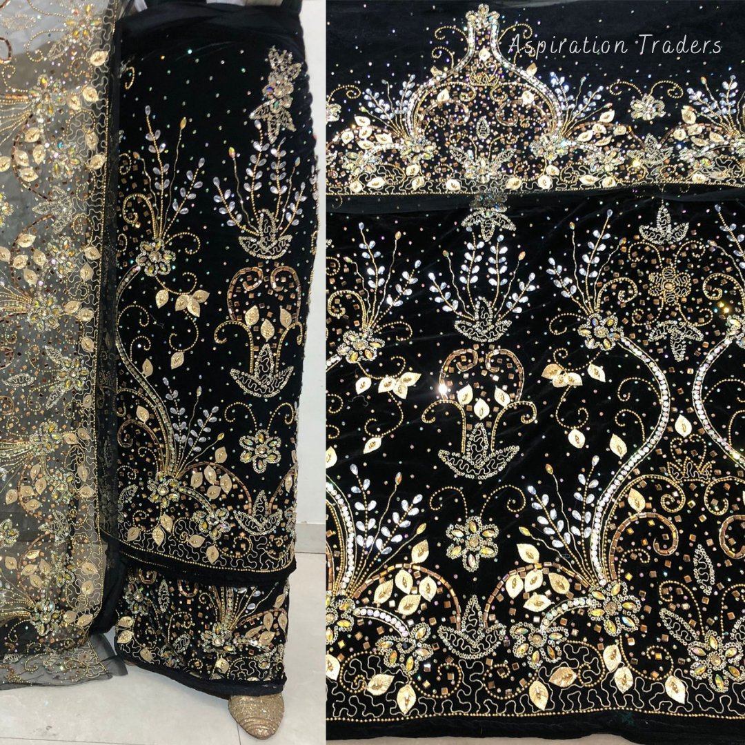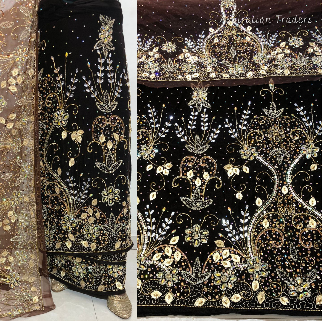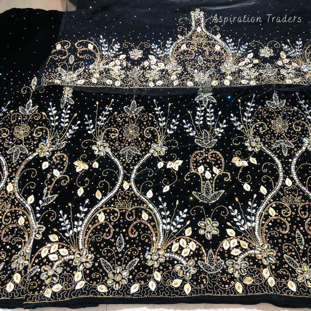- African High-Quality velvet lace fabric with lots of Stones Work, Pearl Work, CutWork.
