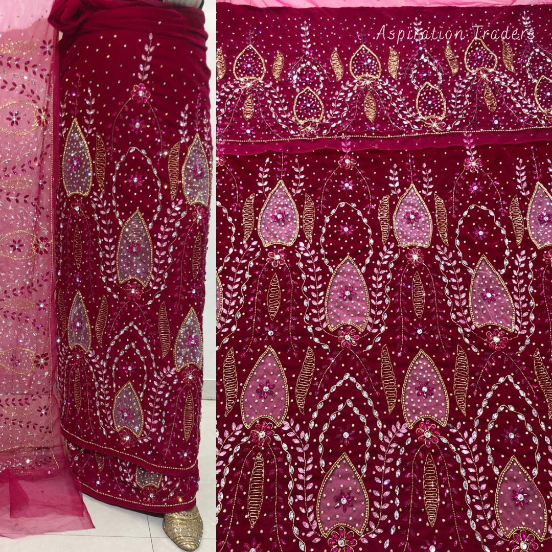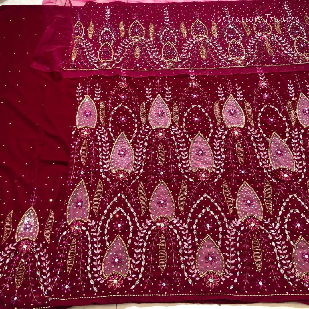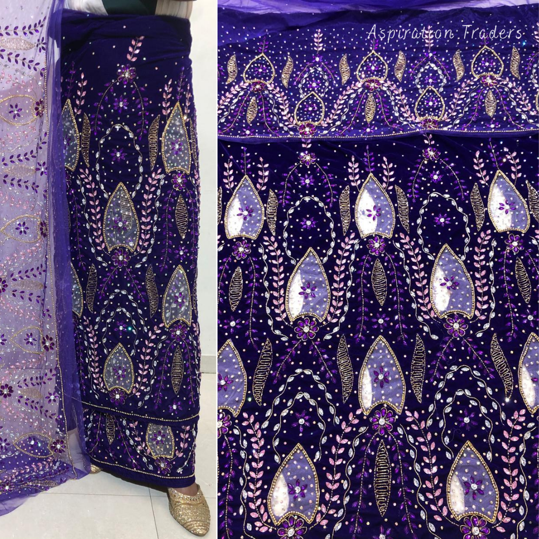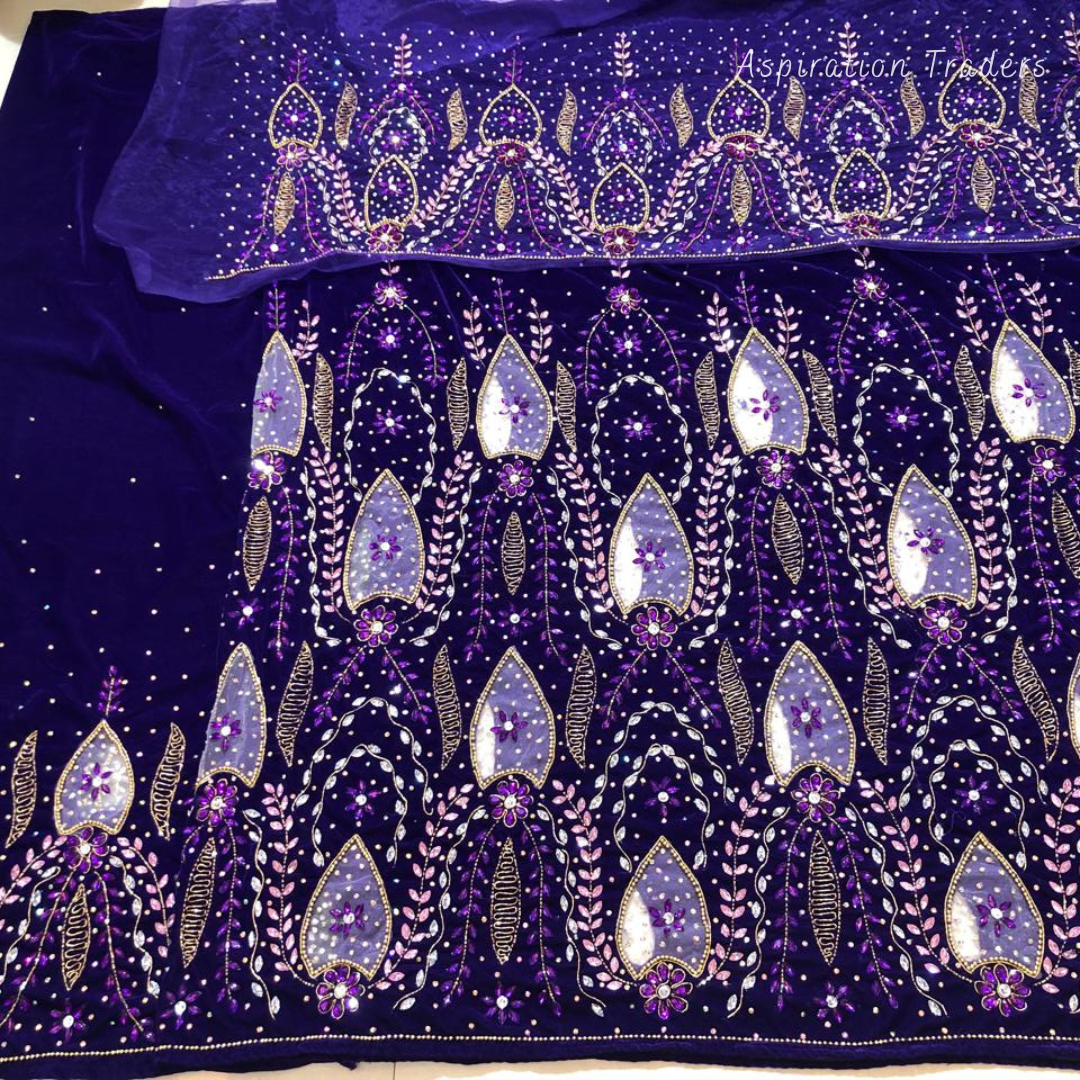 - African High-Quality velvet lace fabric with lots of Stones Work, Pearl Work, CutWork.