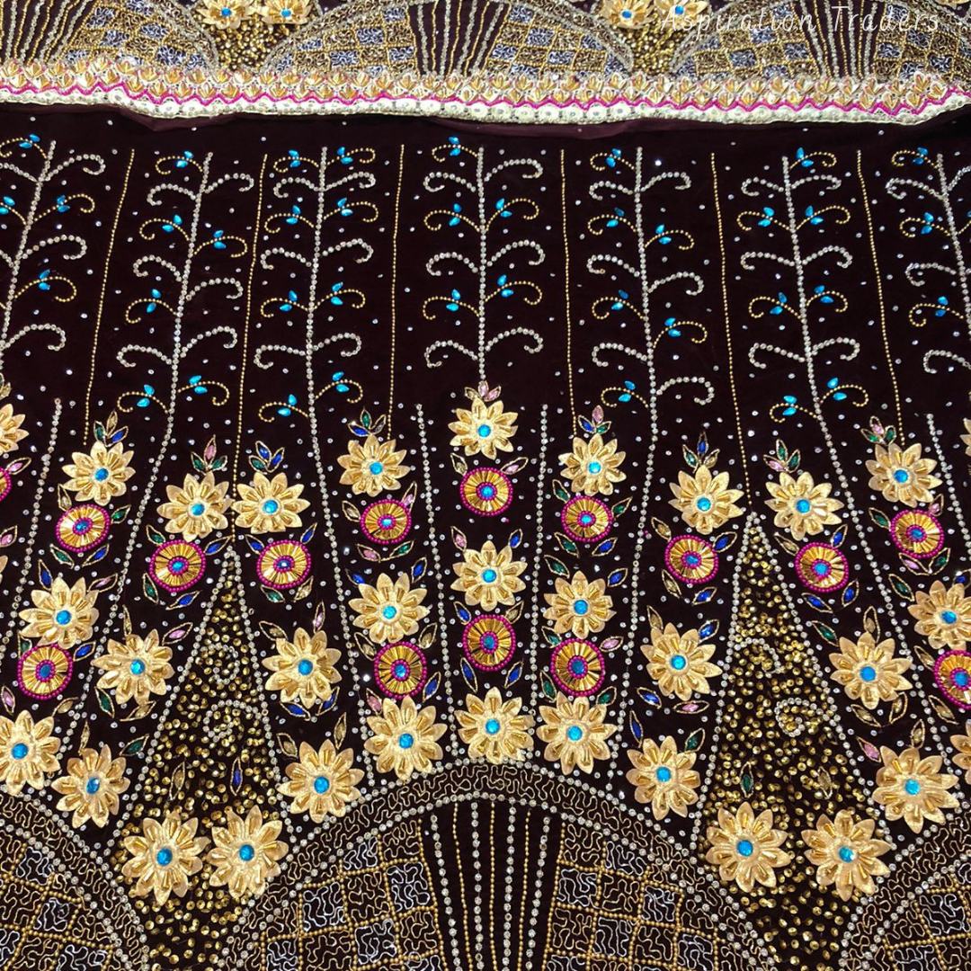Maroon Stone Beaded Designer Velvet Fabric George Set - VG095