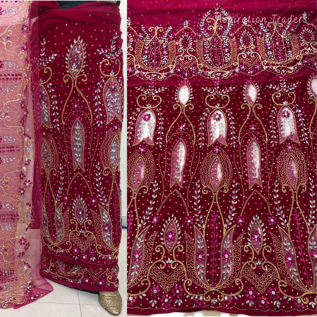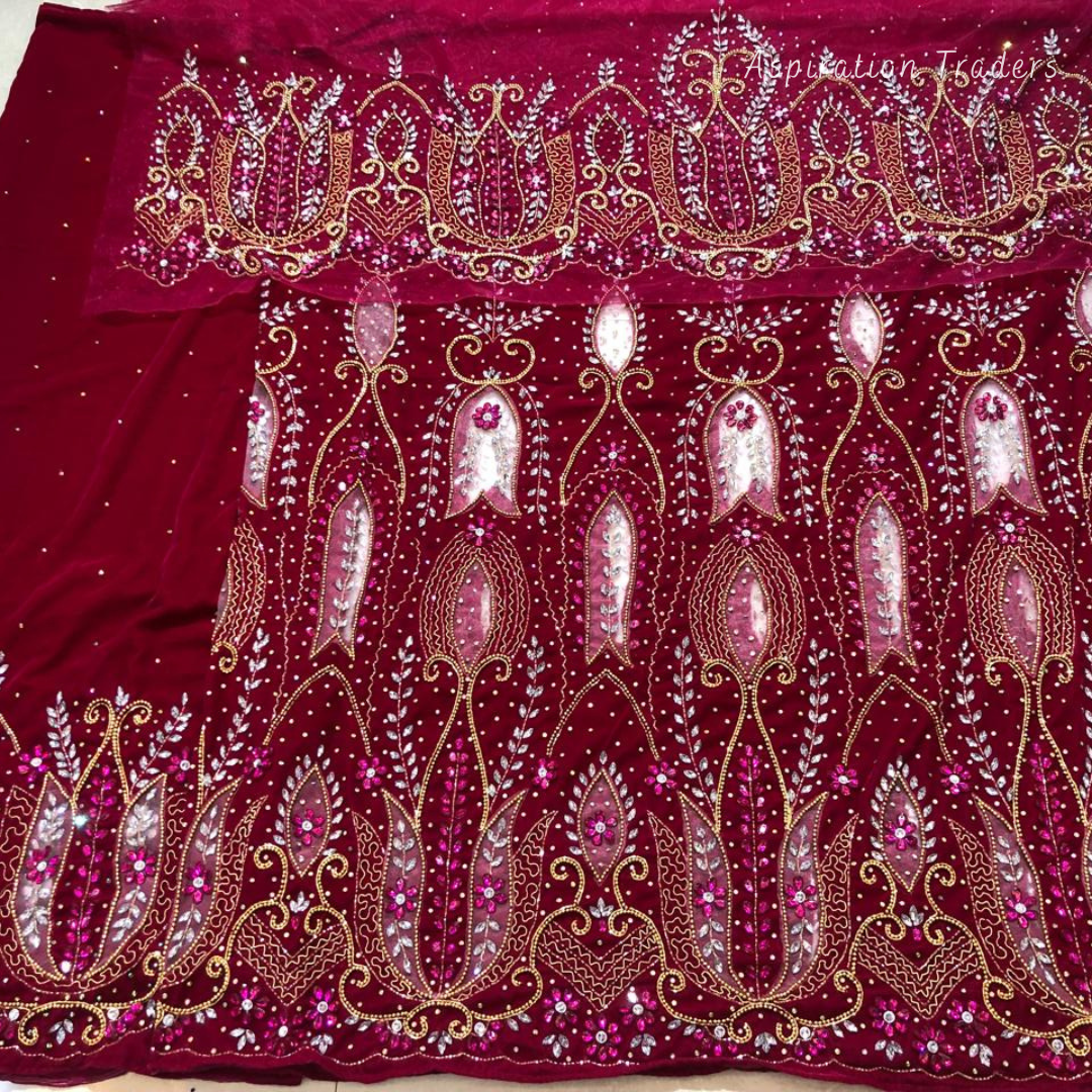 • African High-Quality velvet lace fabric with lots of Stones Work, Pearl Work, CutWork.