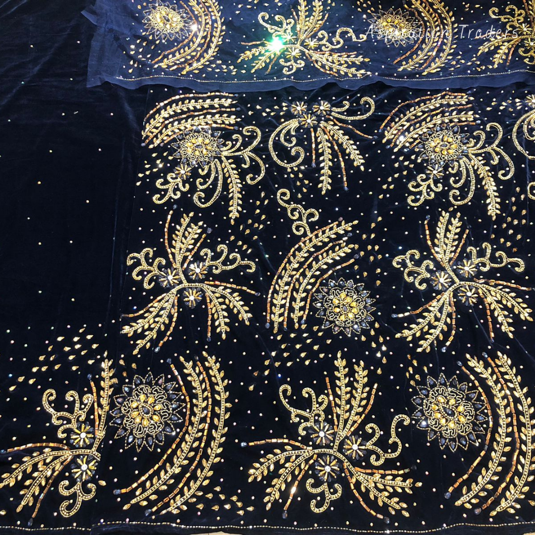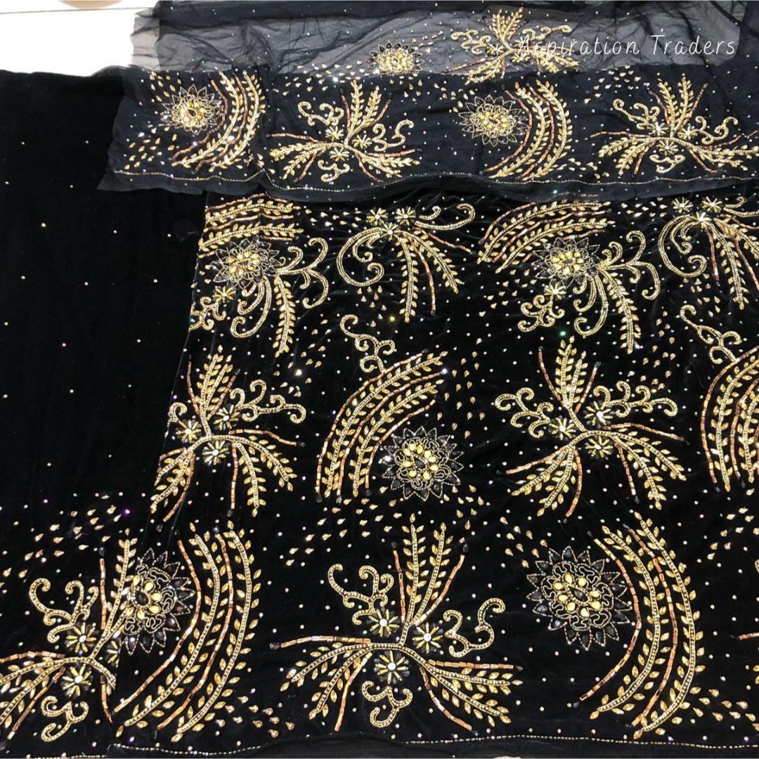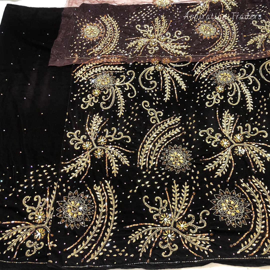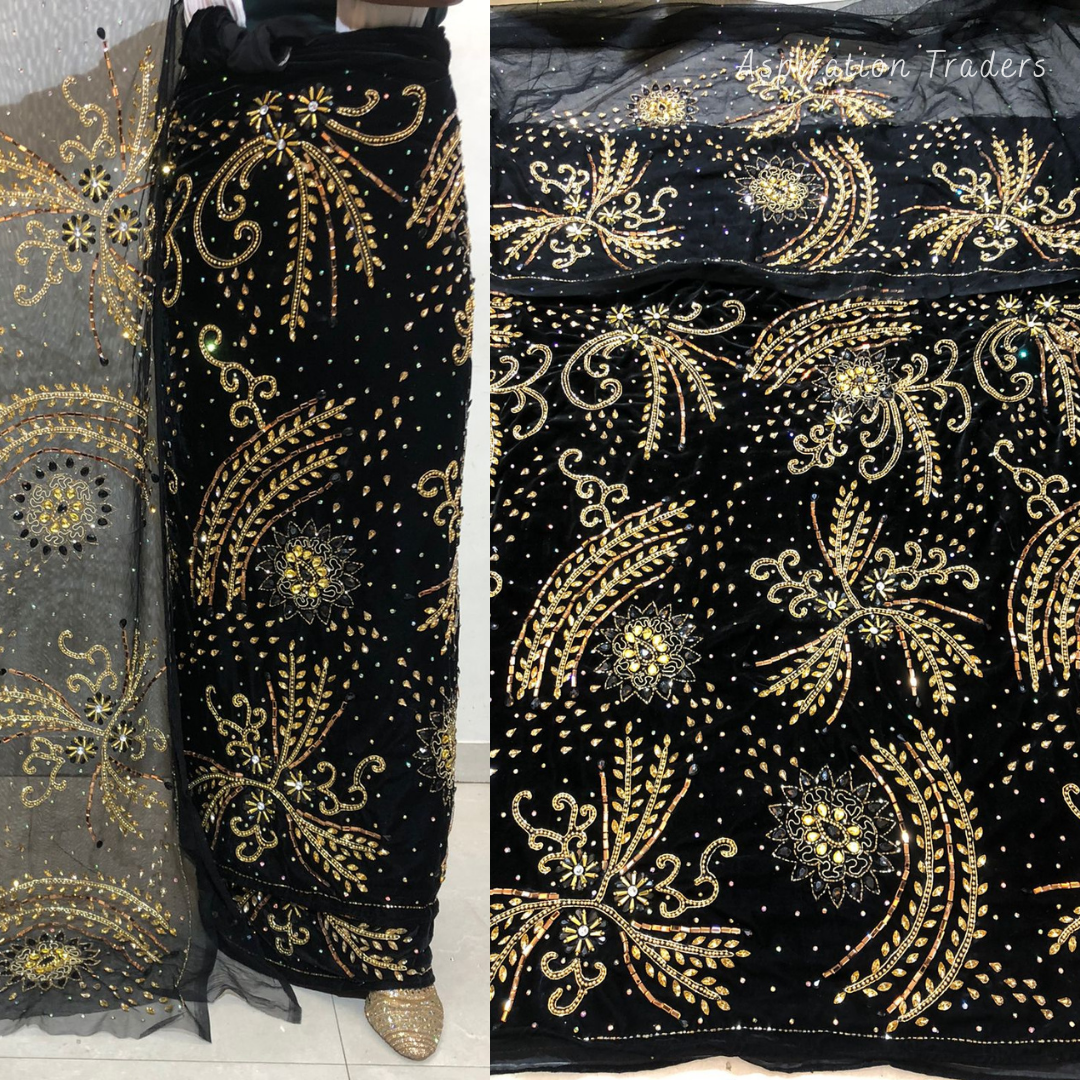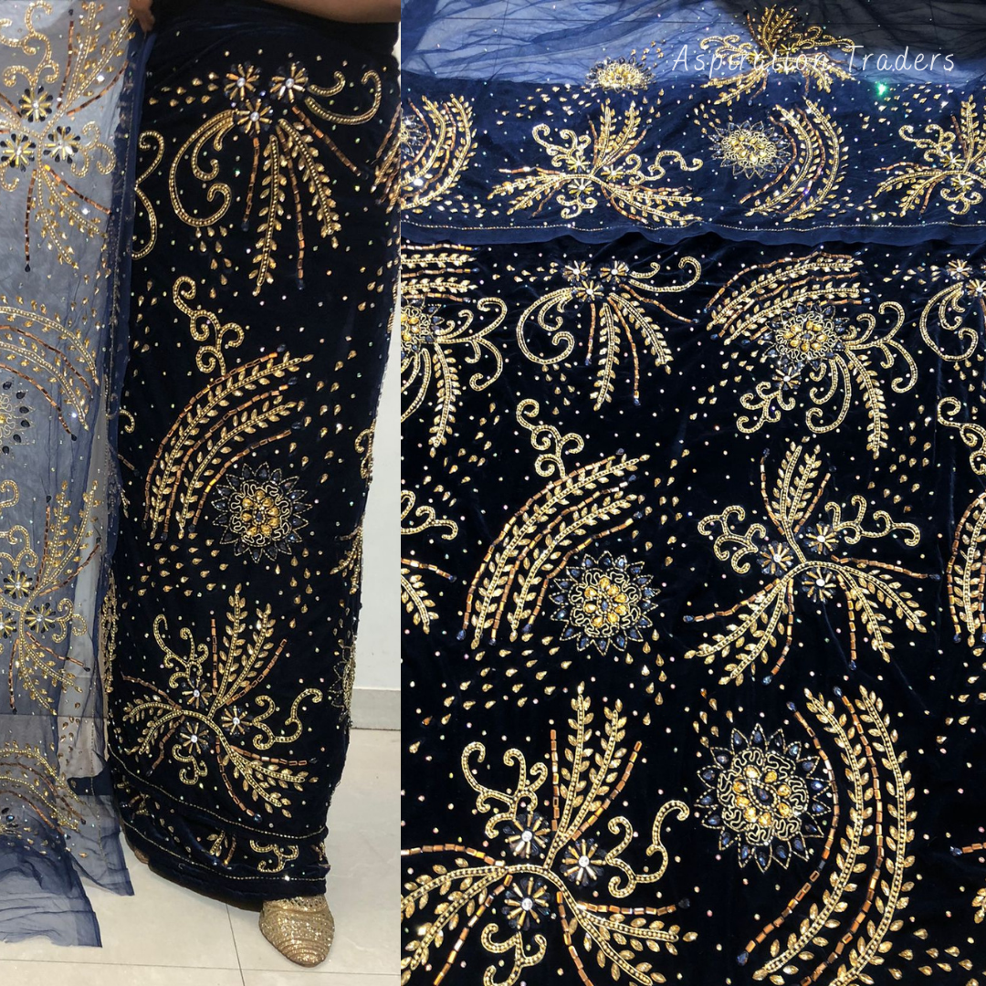 • African High-Quality velvet lace fabric with lots of Stones Work, Pearl Work, CutWork.