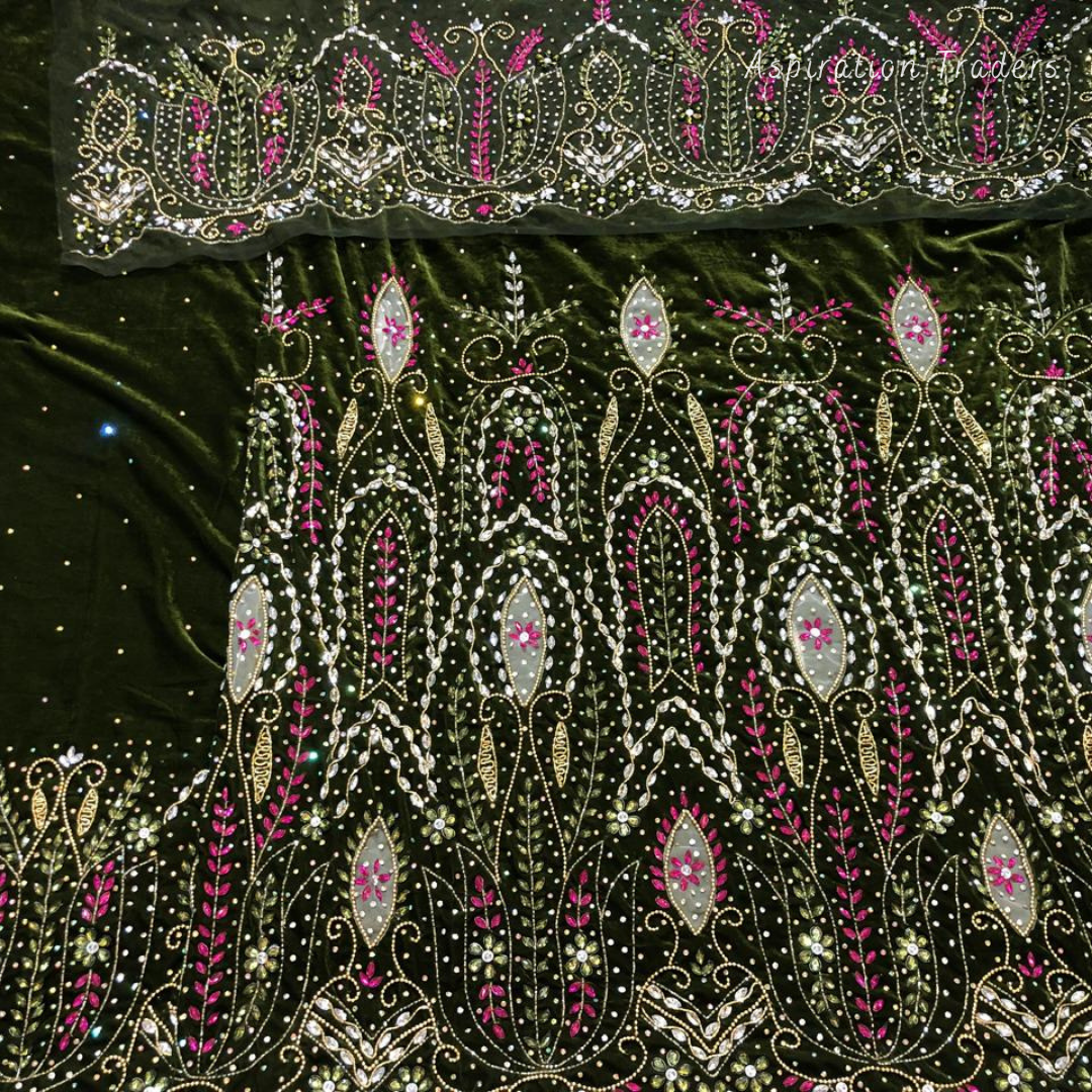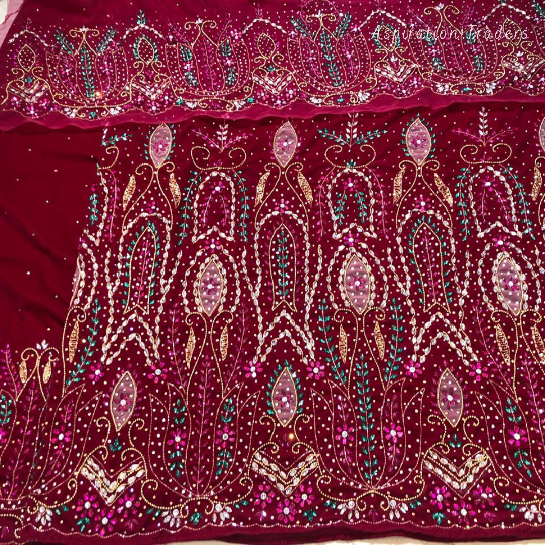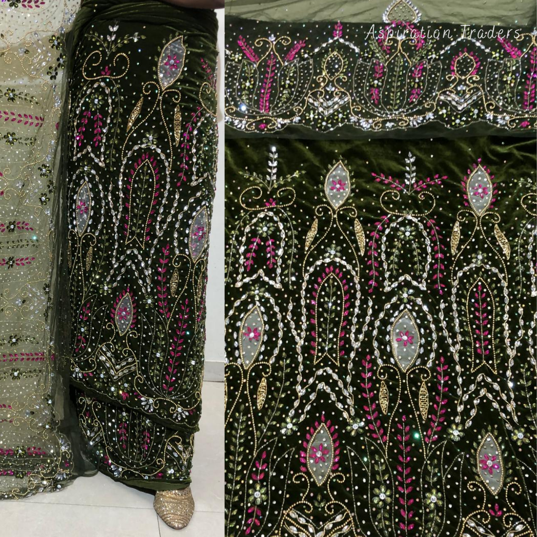 - African High-Quality velvet lace fabric with lots of Stones Work, Pearl Work, CutWork.