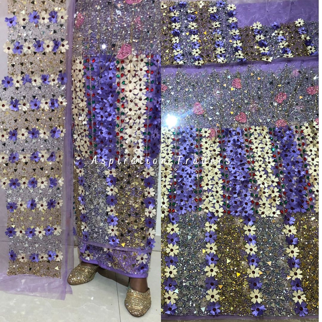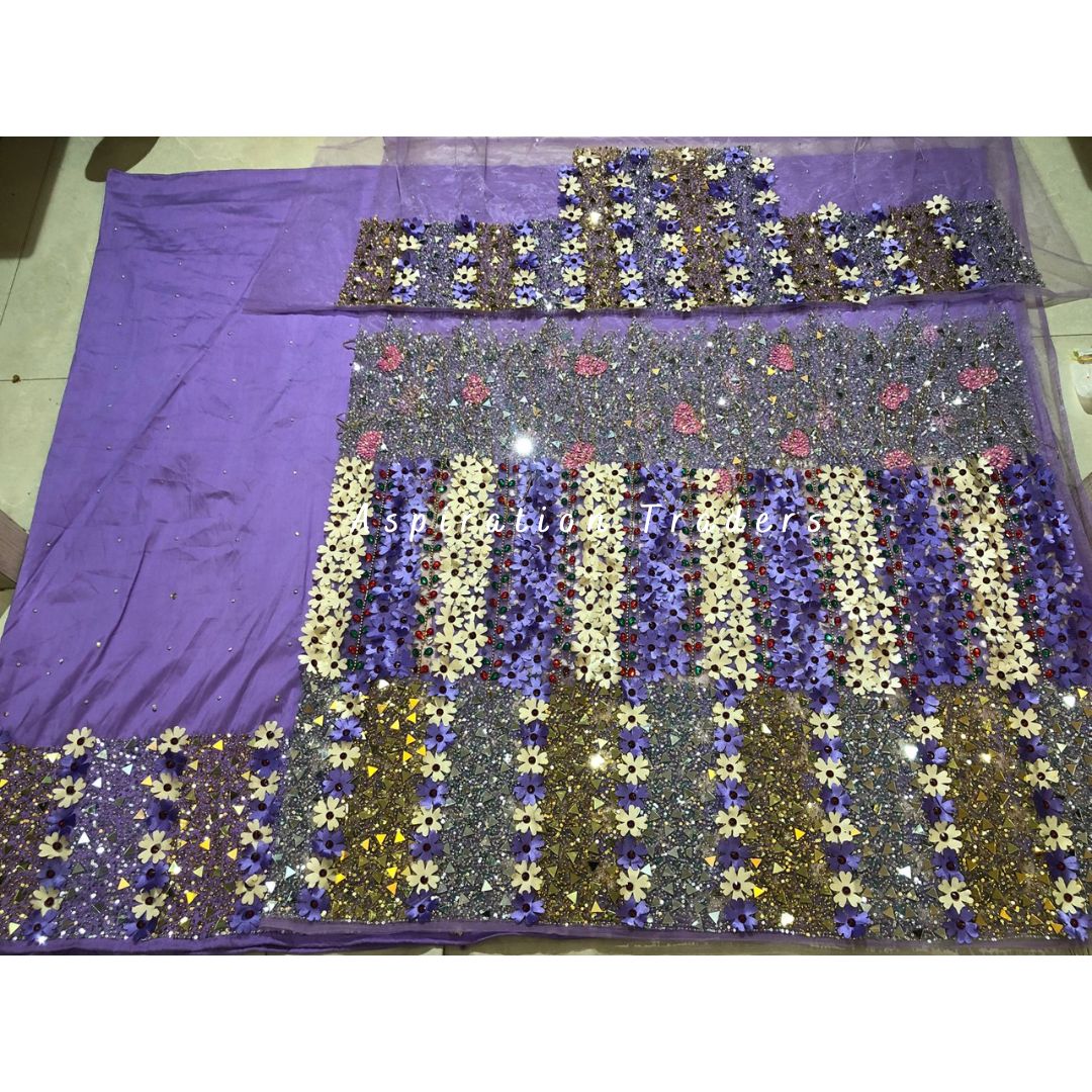 Ethereal Lilac colored beaded with sequence beaded net lace george wrapper set - NLDG219