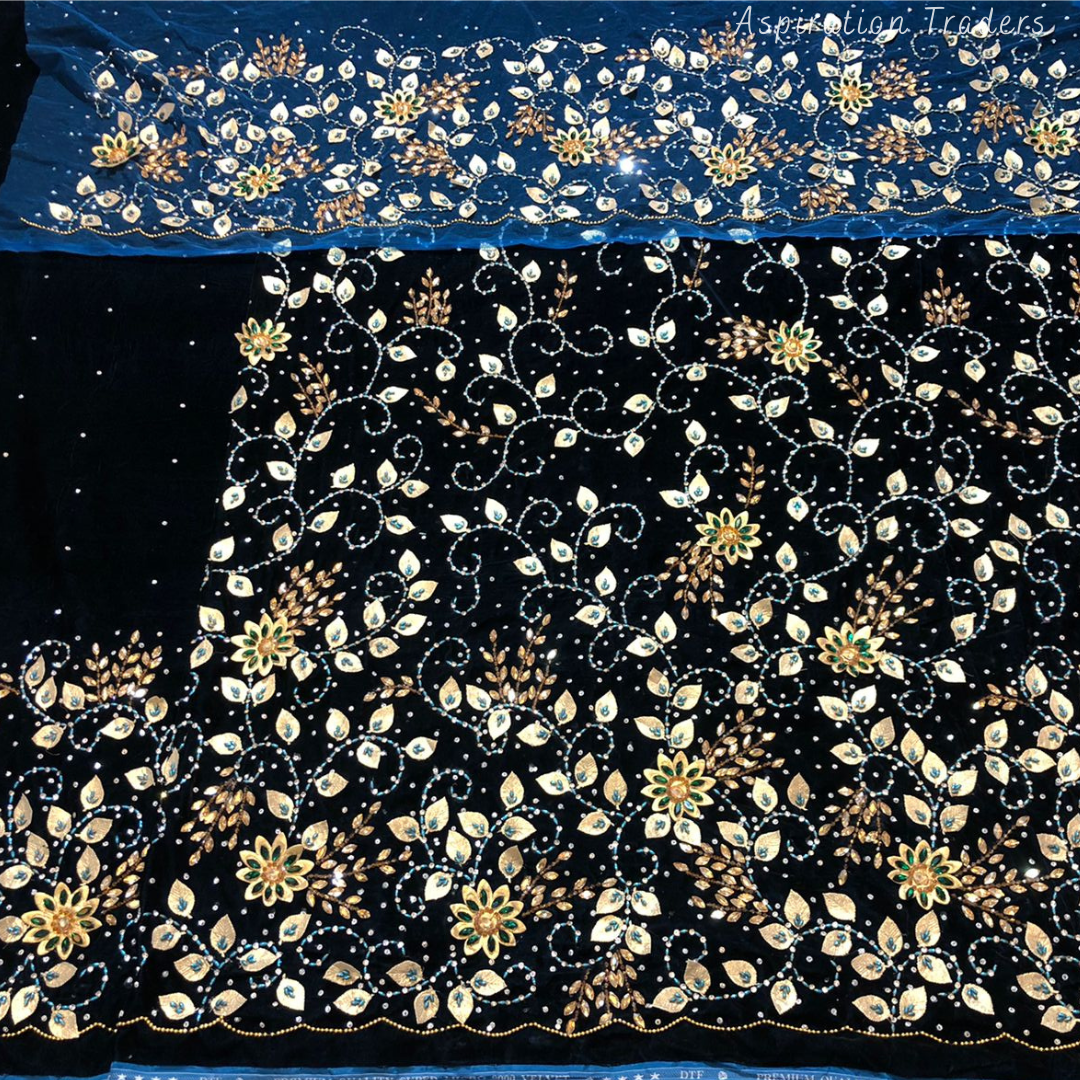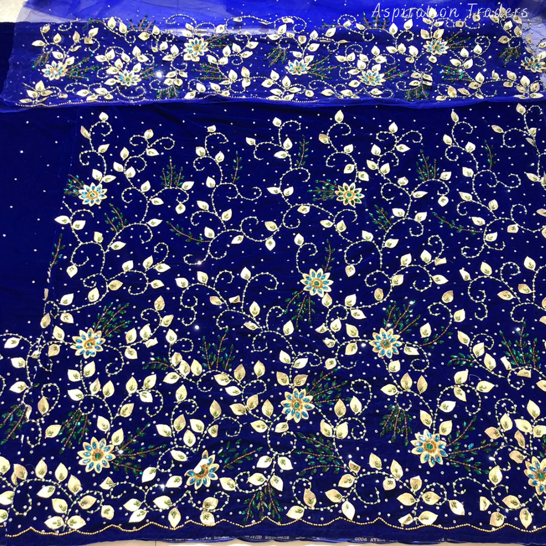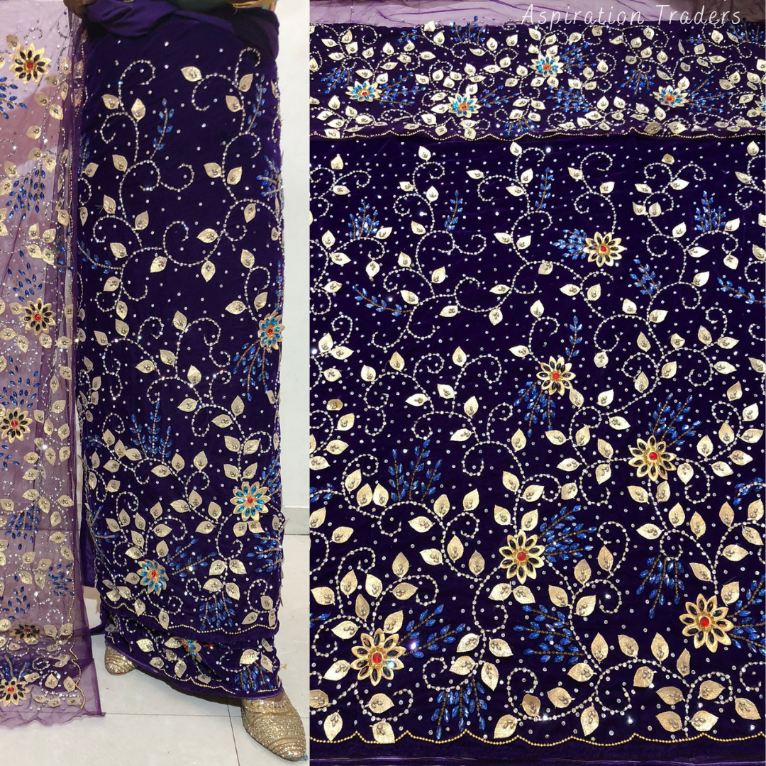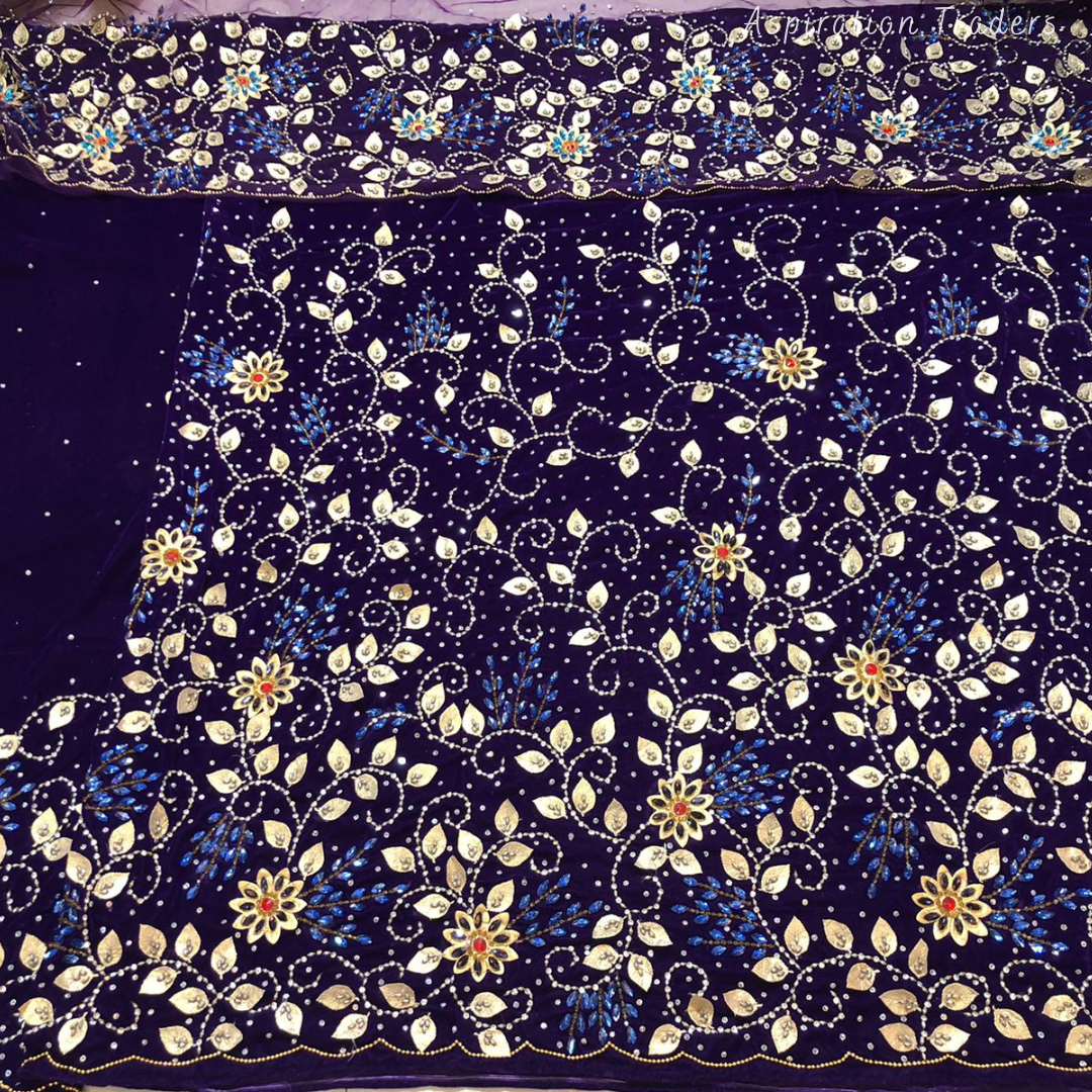 • African High-Quality velvet lace fabric with lots of Stones Work, Pearl Work, CutWork.