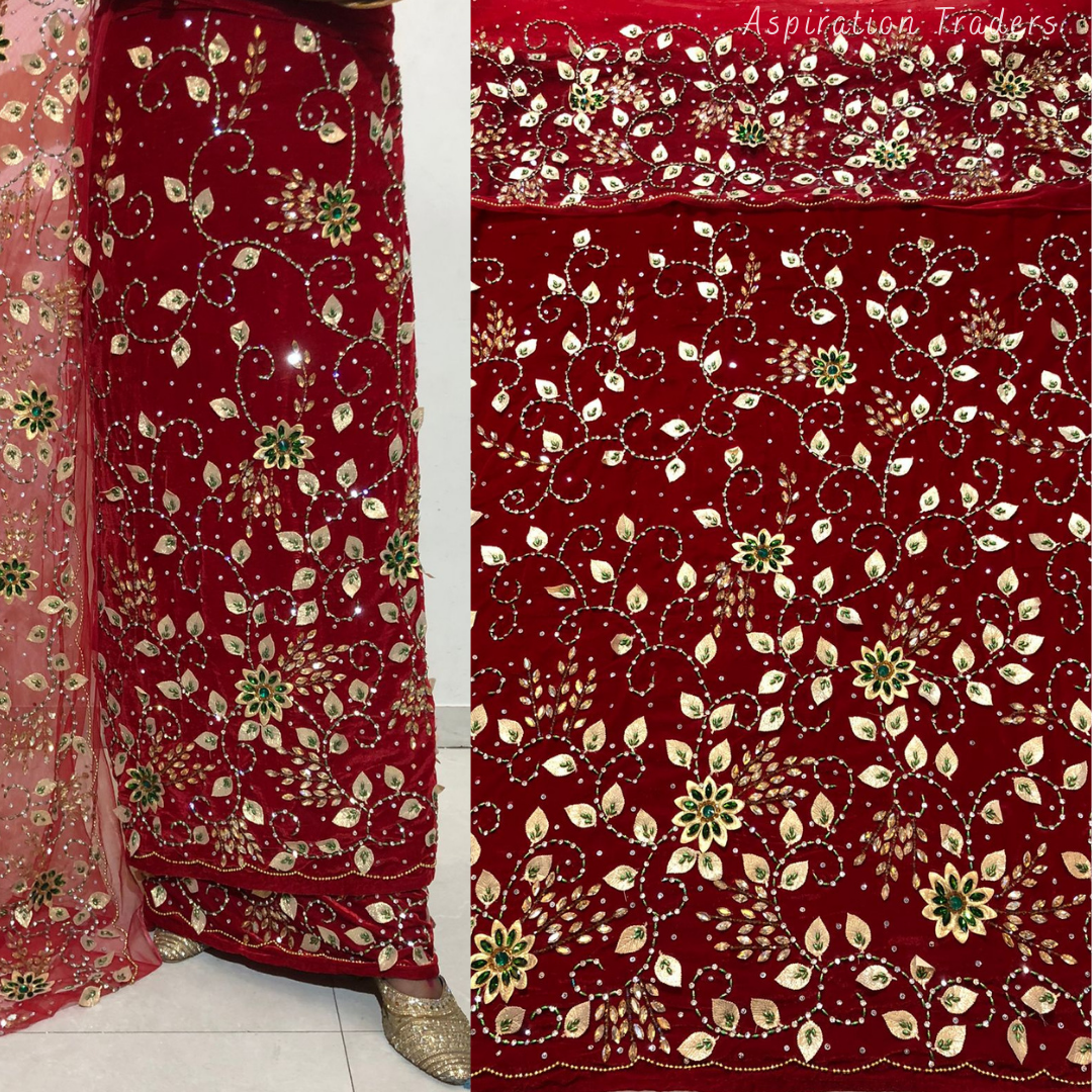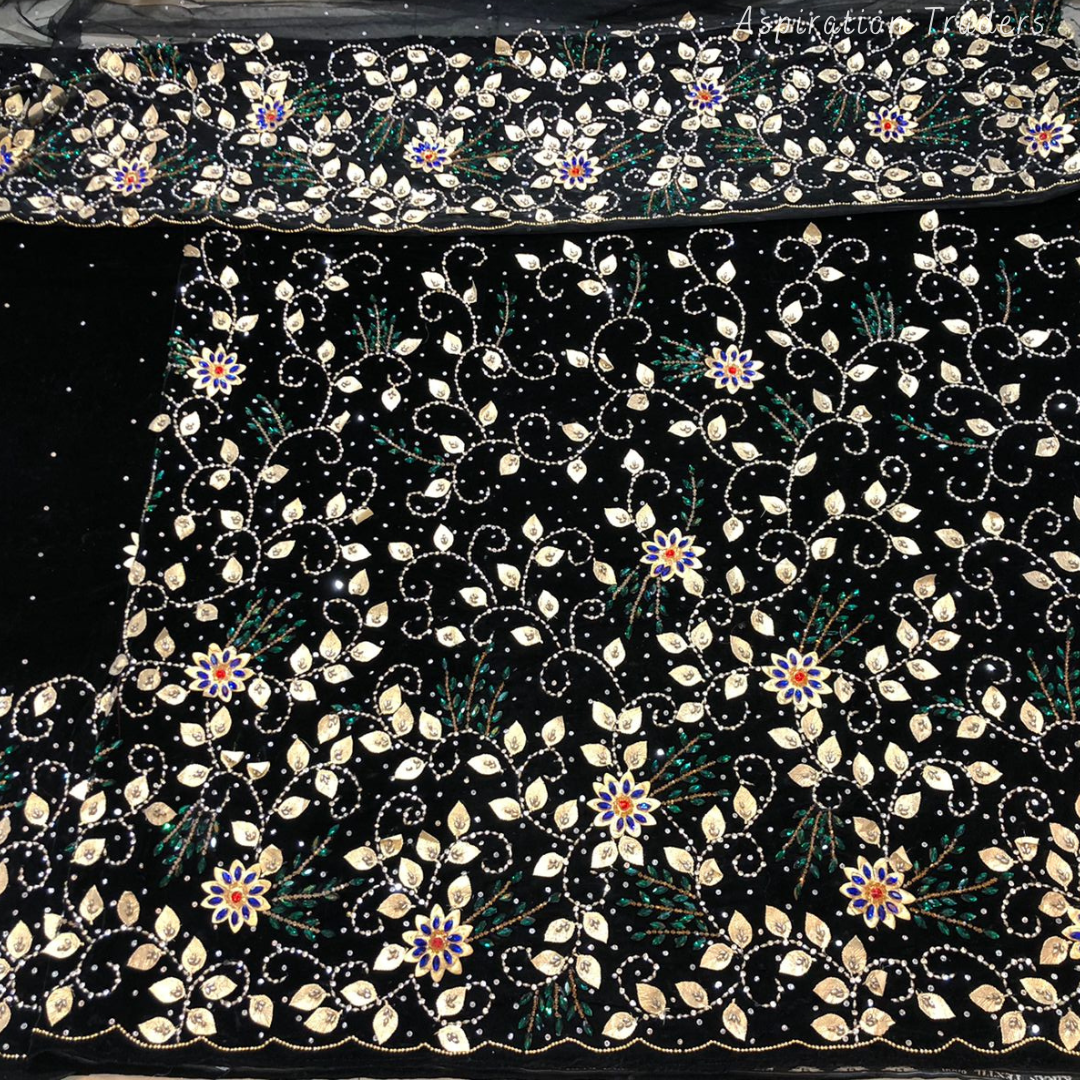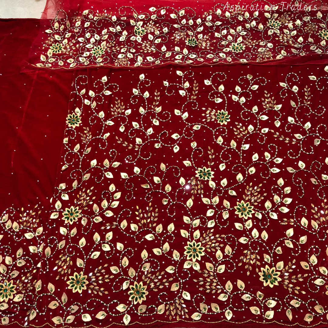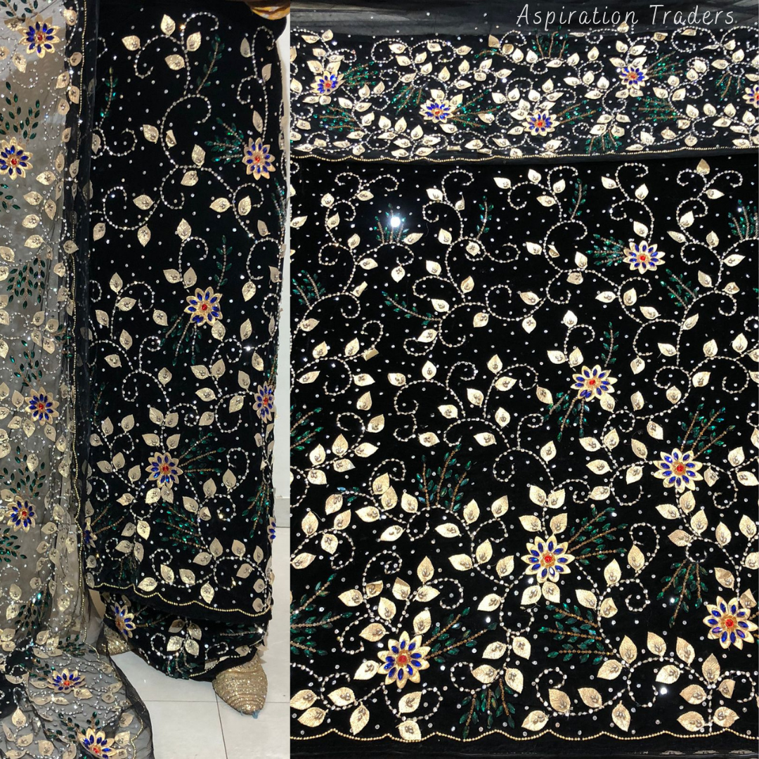 • African High-Quality velvet lace fabric with lots of Stones Work, Pearl Work, CutWork.